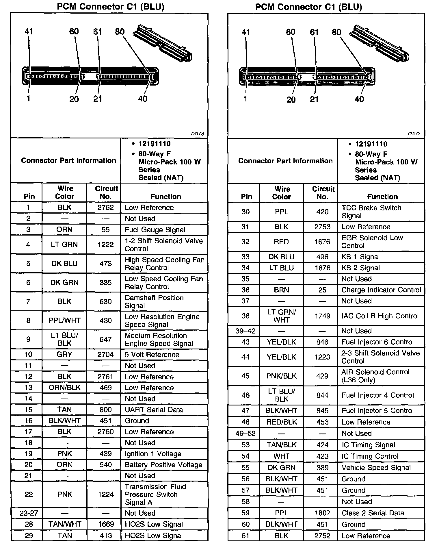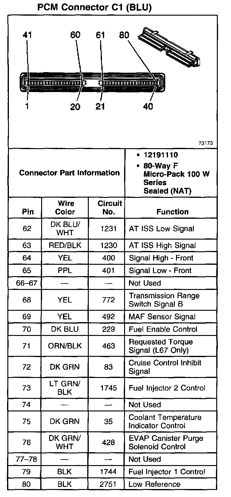 PCM Connector C1 (BLU) (Part 2 Of 2):