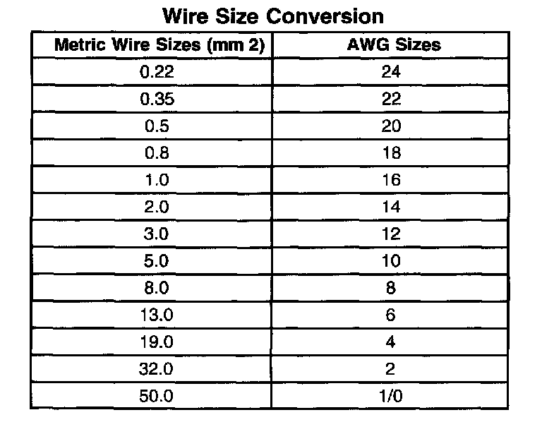 ^ The wire must be of equal or greater size than the original (except fusible link).