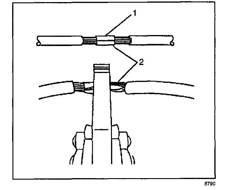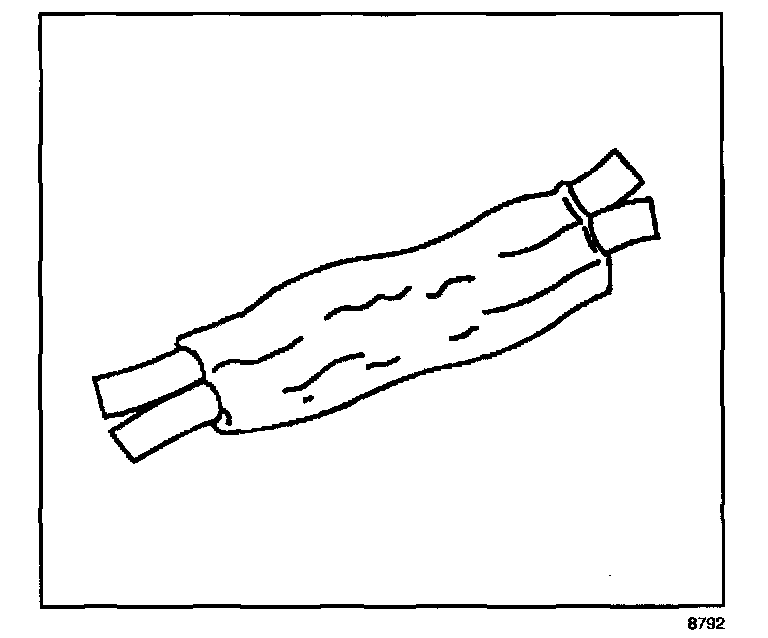 ^ Ensure that each splice is at least 40 mm (1.5 in) away from other splices, harness branches and connectors. This helps prevent moisture from bridging adjacent splices and causing damage.