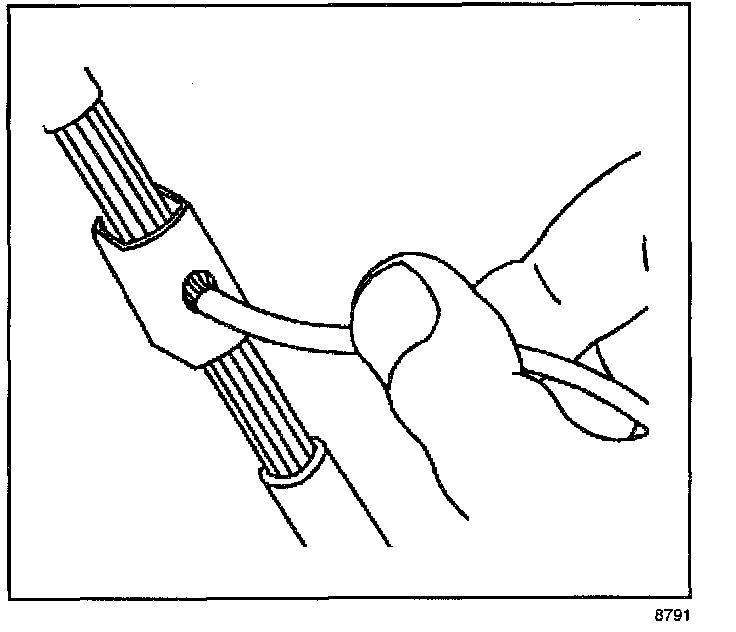 ^ Strip approximately 7.5 mm (5/16 in) of insulation from each wire to be spliced.