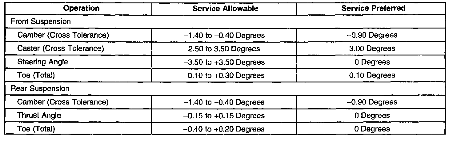 Wheel Alignment Specifications