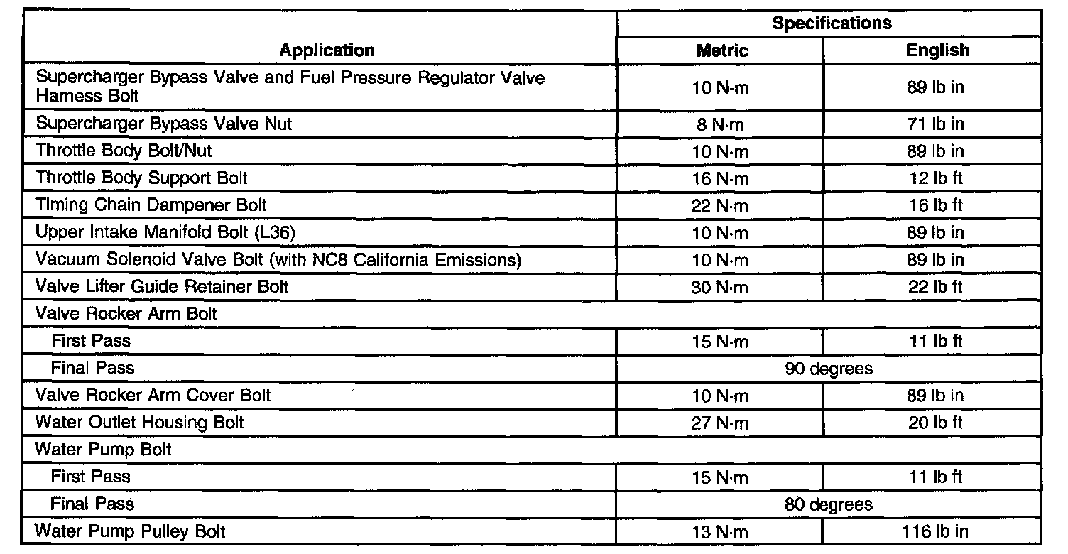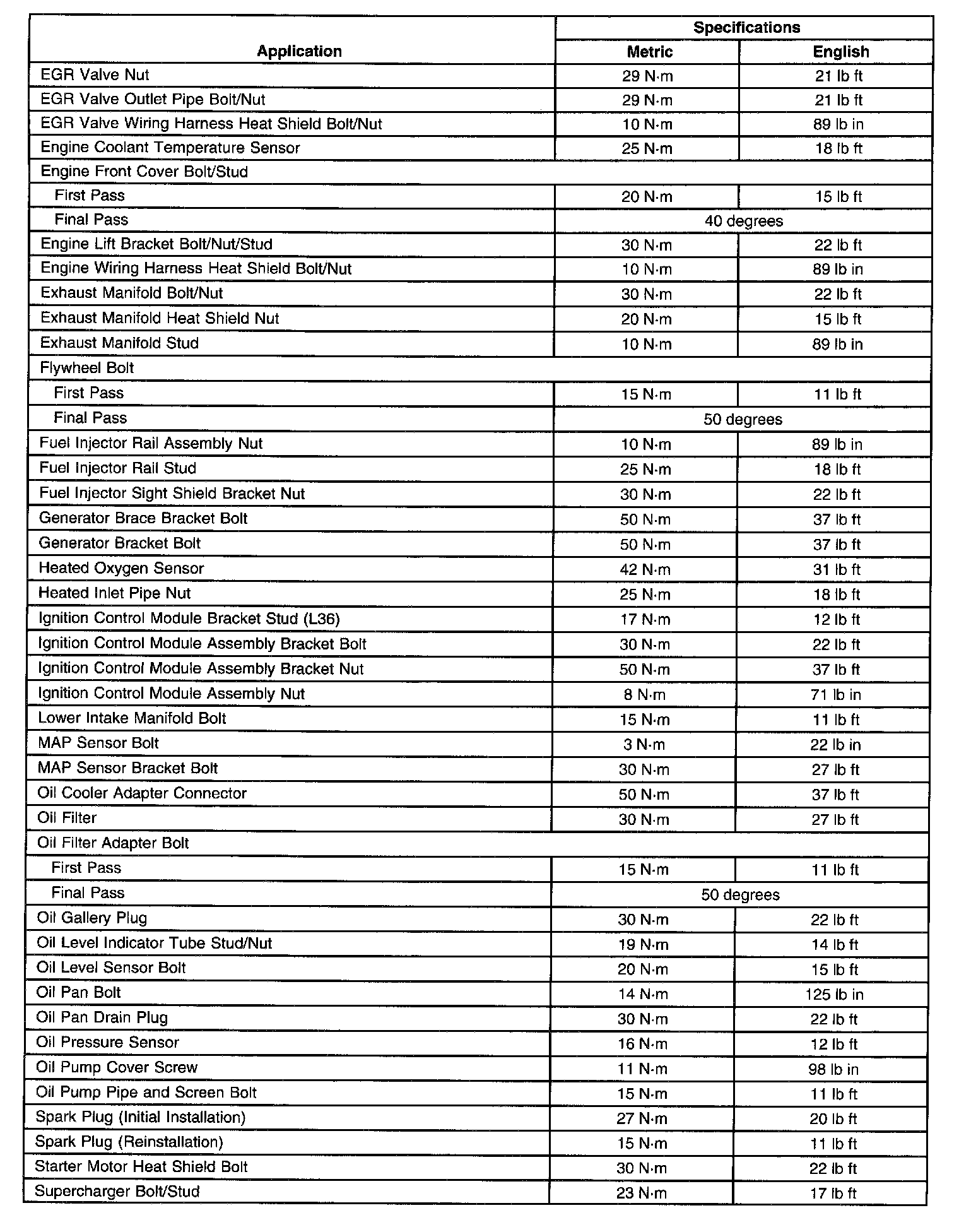 Fastener Tightening Specifications (C, H. W)