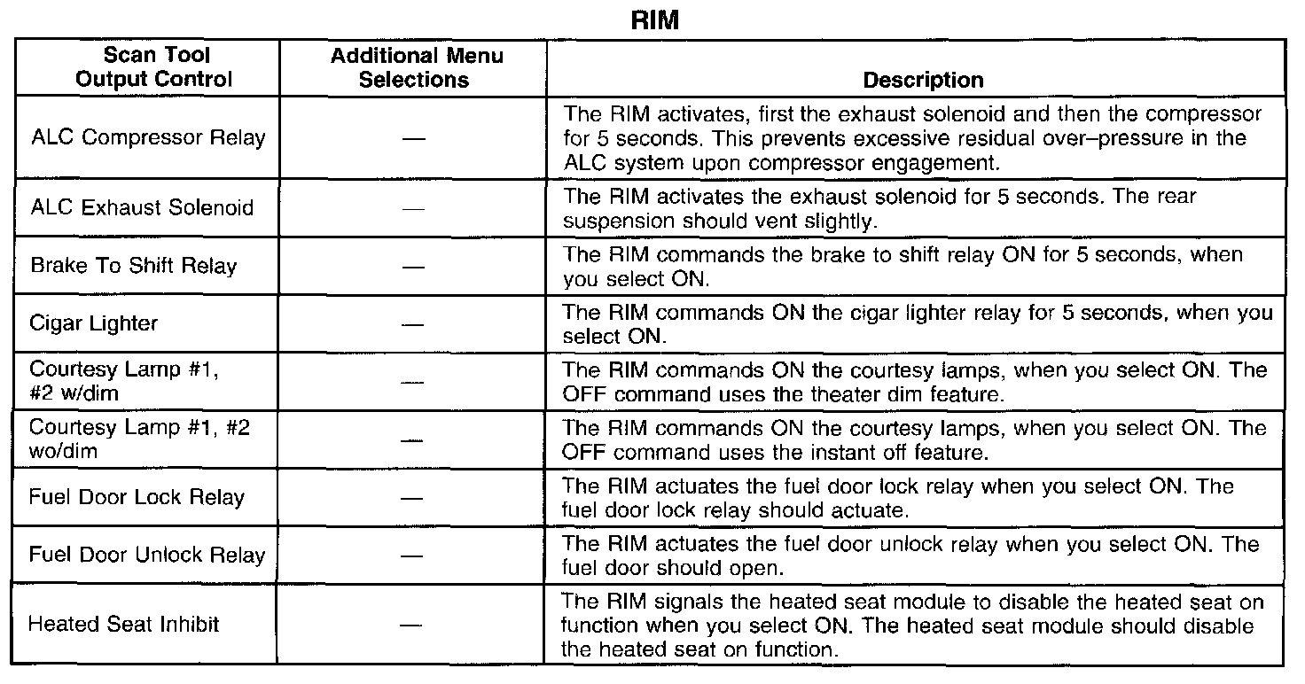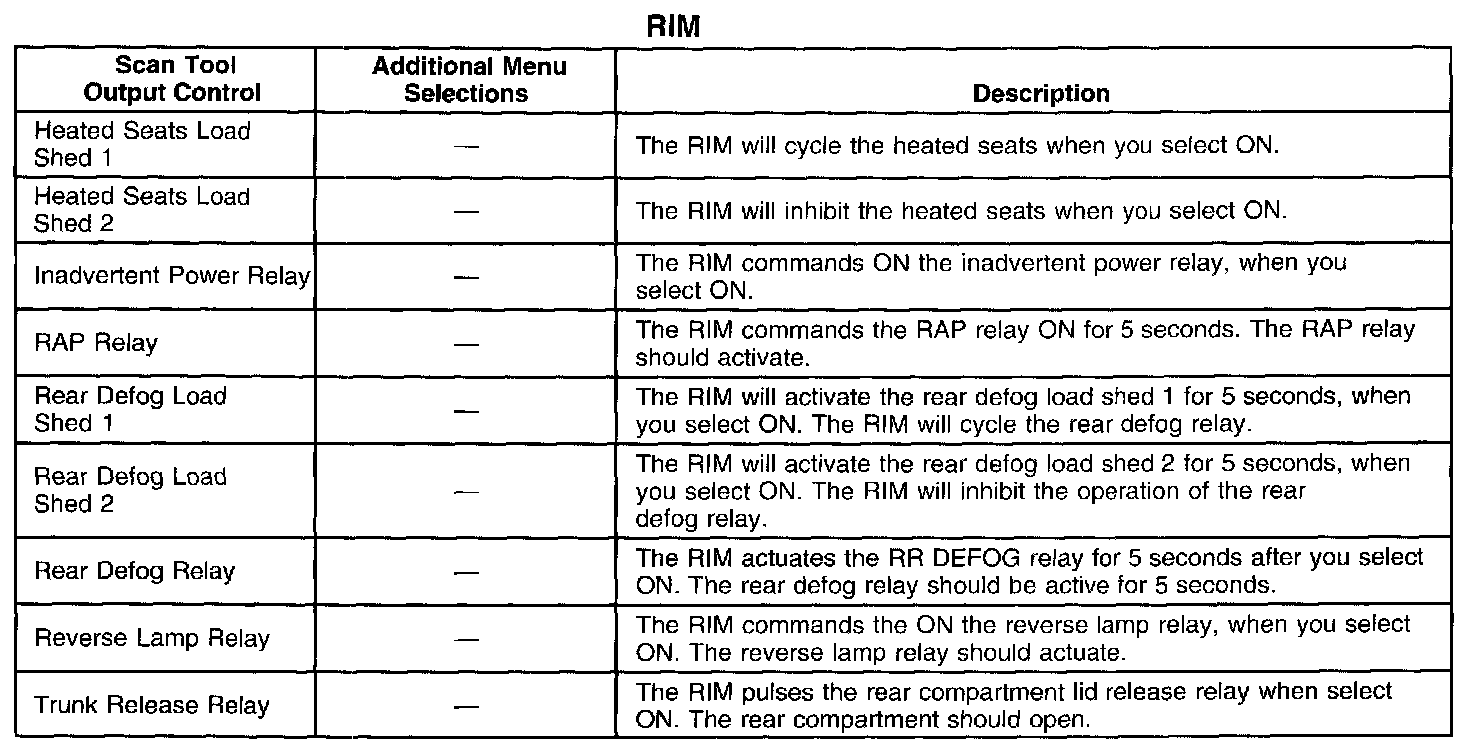Scan Tool Output Controls - Rear Integration Module (RIM)