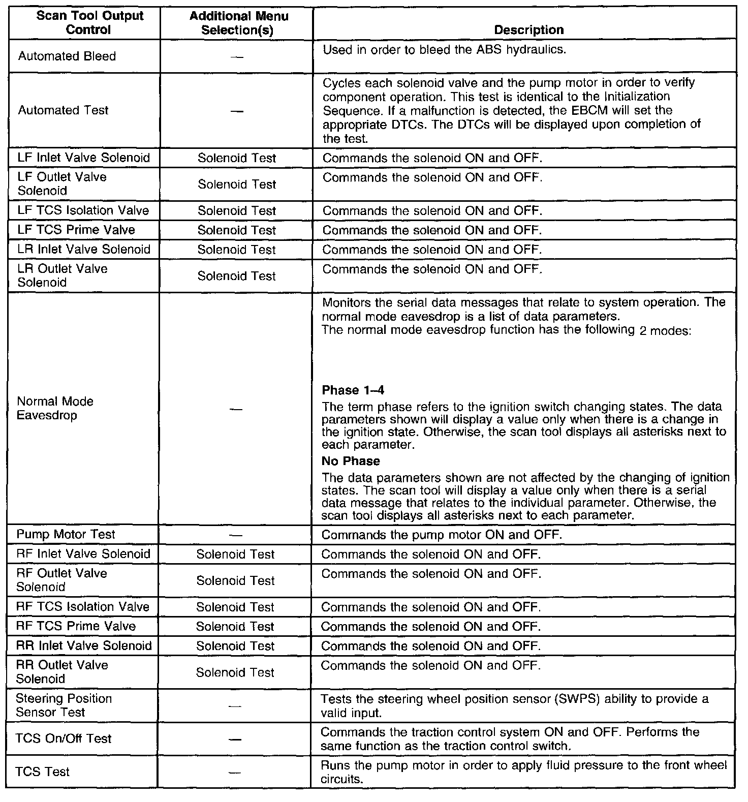 Scan Tool Output Controls