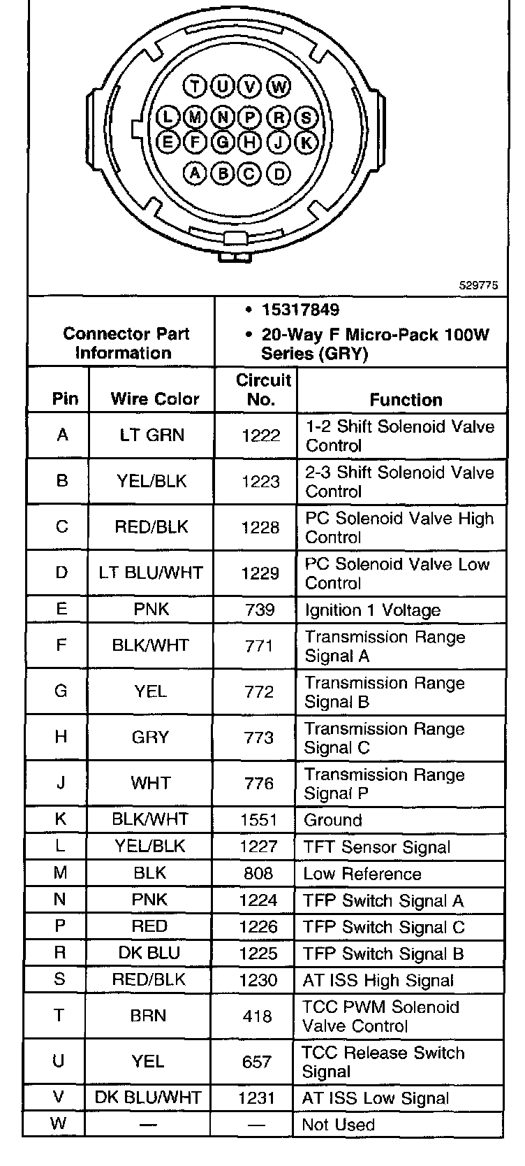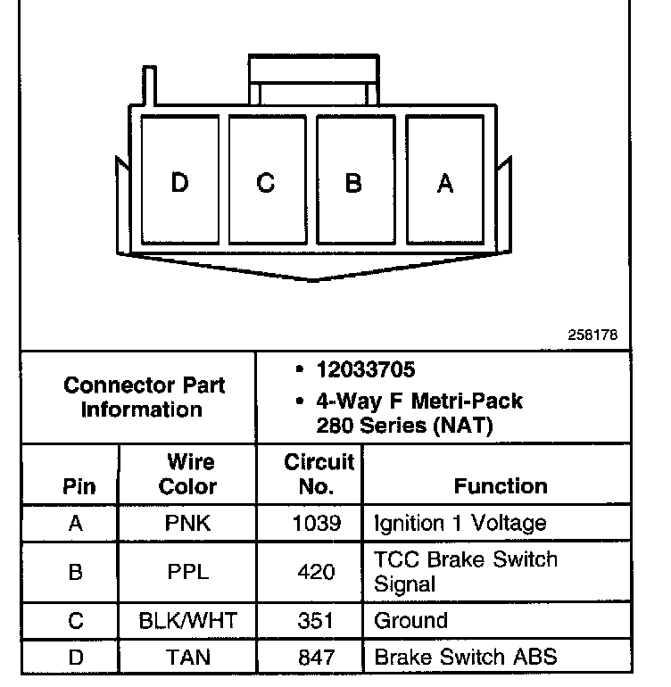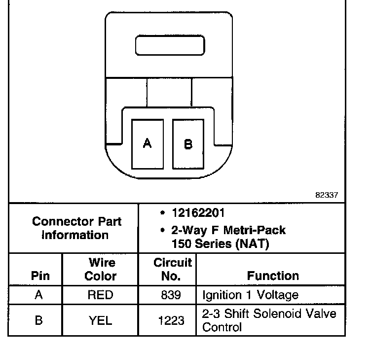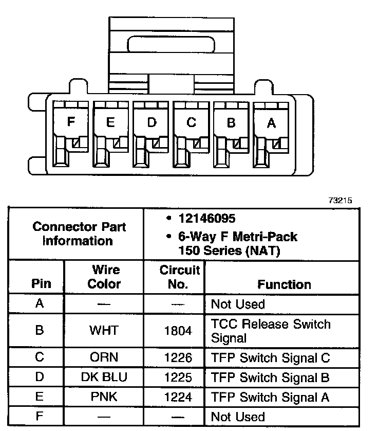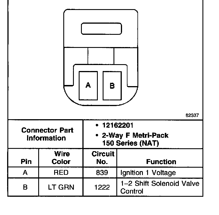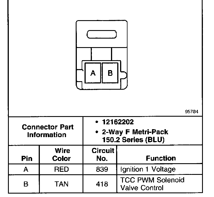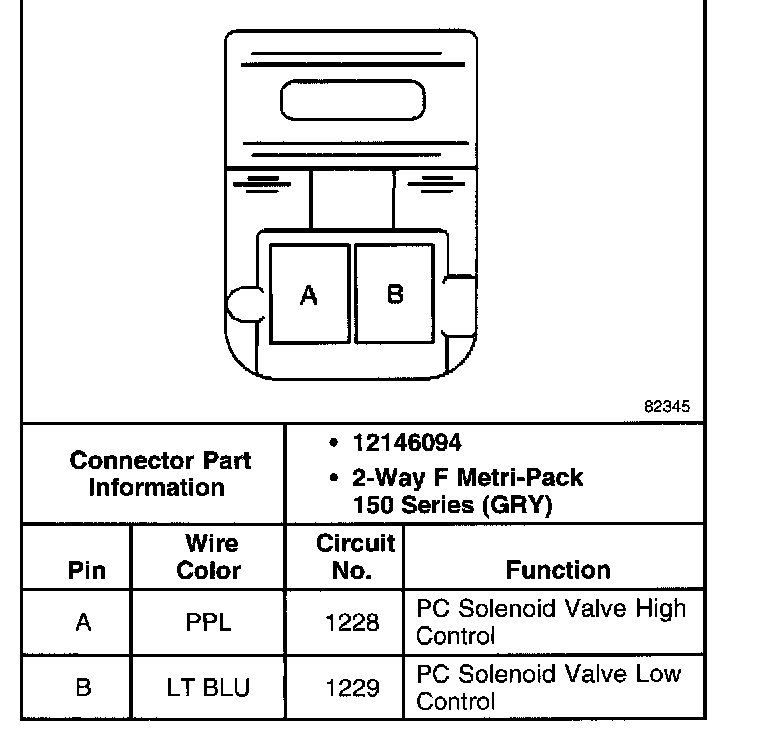 Torque Converter Clutch Pulse Width Modulated Solenoid Valve Connector, Wiring Harness Side