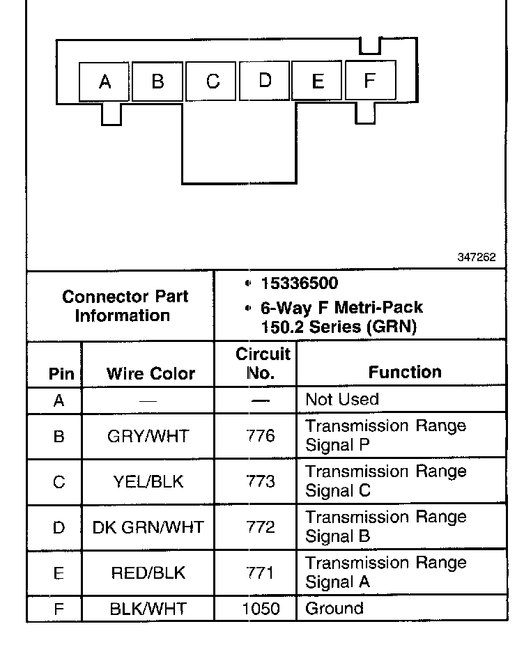 Transmission Internal Mode Switch Connector, Wiring Harness Side