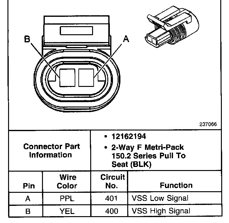 Vehicle Speed Sensor Connector, Wiring Harness Side