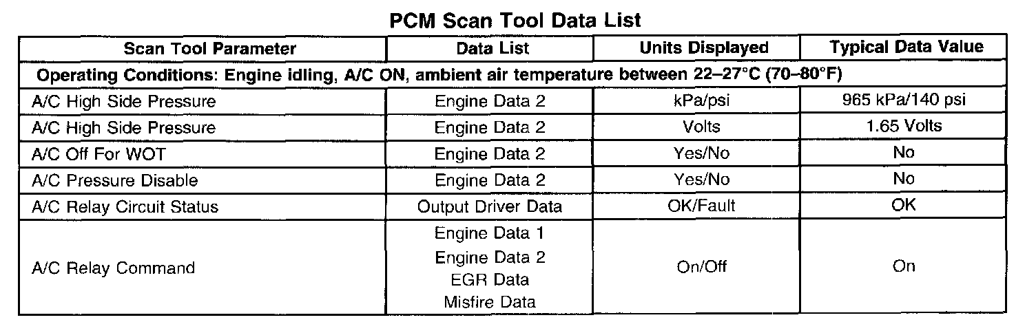 The scan tool data values were taken from a known good vehicle under the following conditions: