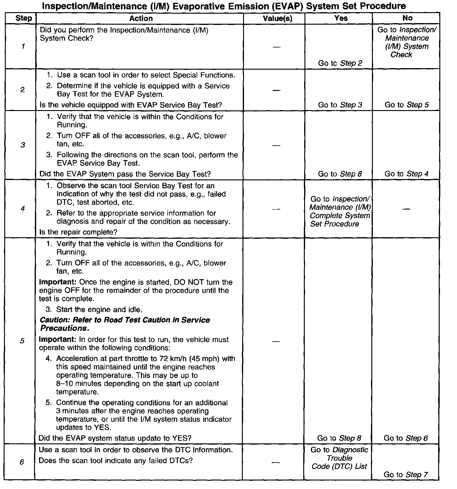 1. Perform the I/M System Check before performing this test. Failure to do so may result in difficulty updating the status to YES. Inspection/Maintenance (I/M) System Check