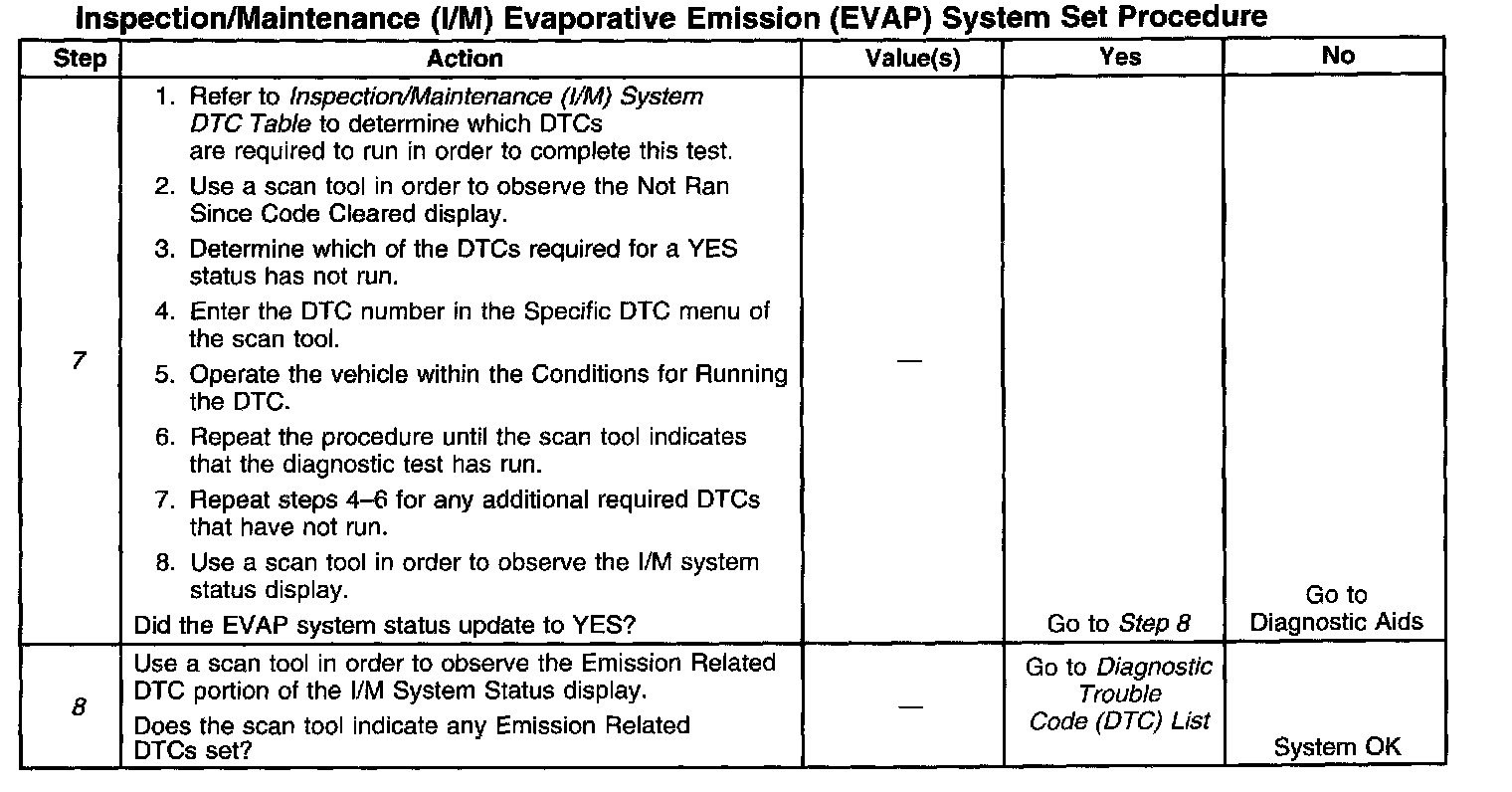 8. The I/M system status only reports on whether or not a diagnostic has run, not what the outcome of the test was If any emission related DTC sets after the tests are complete, the DTC will require diagnosis