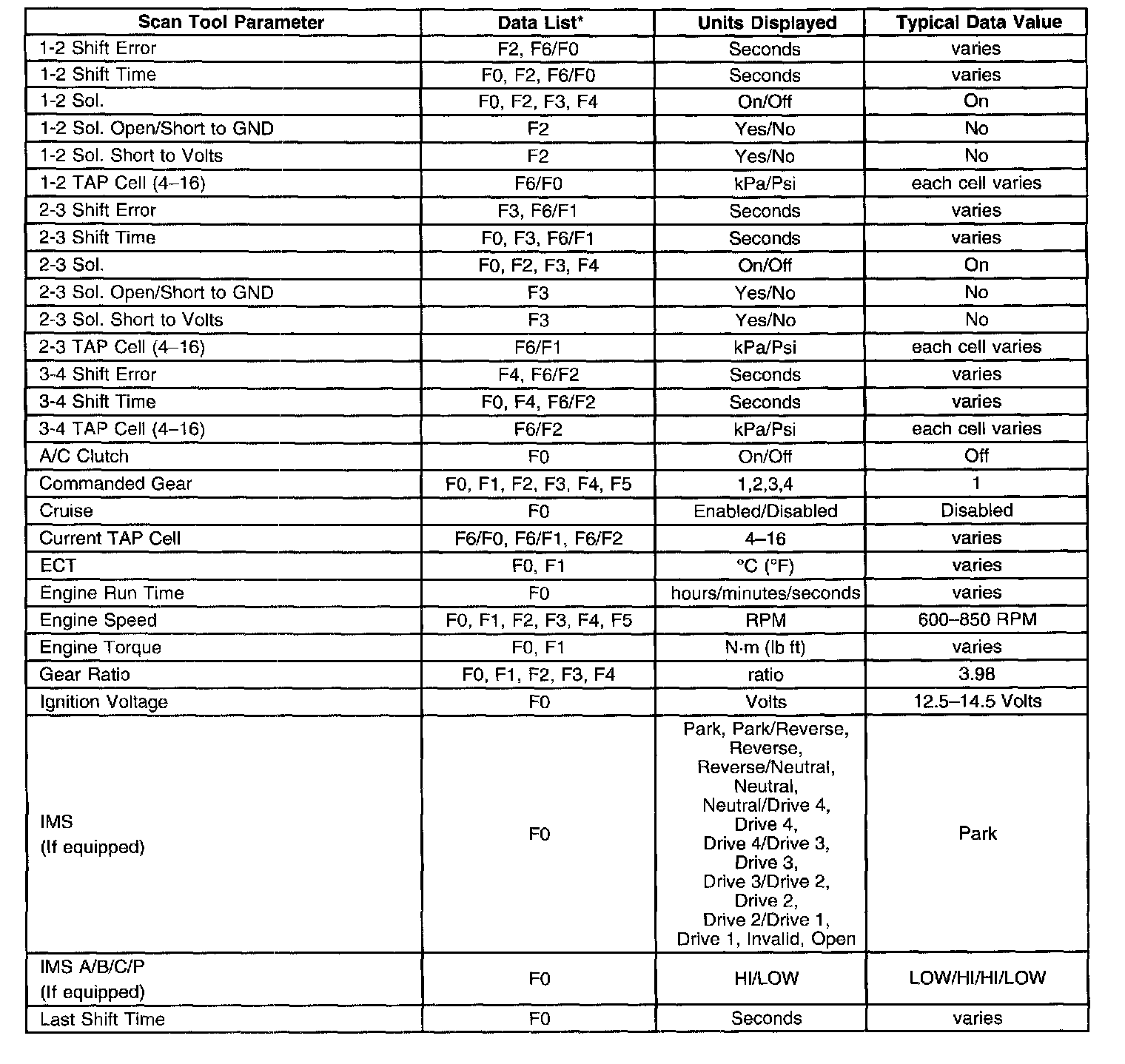 Only the parameters listed below are used for diagnosing. If a scan tool displays other parameters, the values are not recommended by General Motors for use in diagnosis.