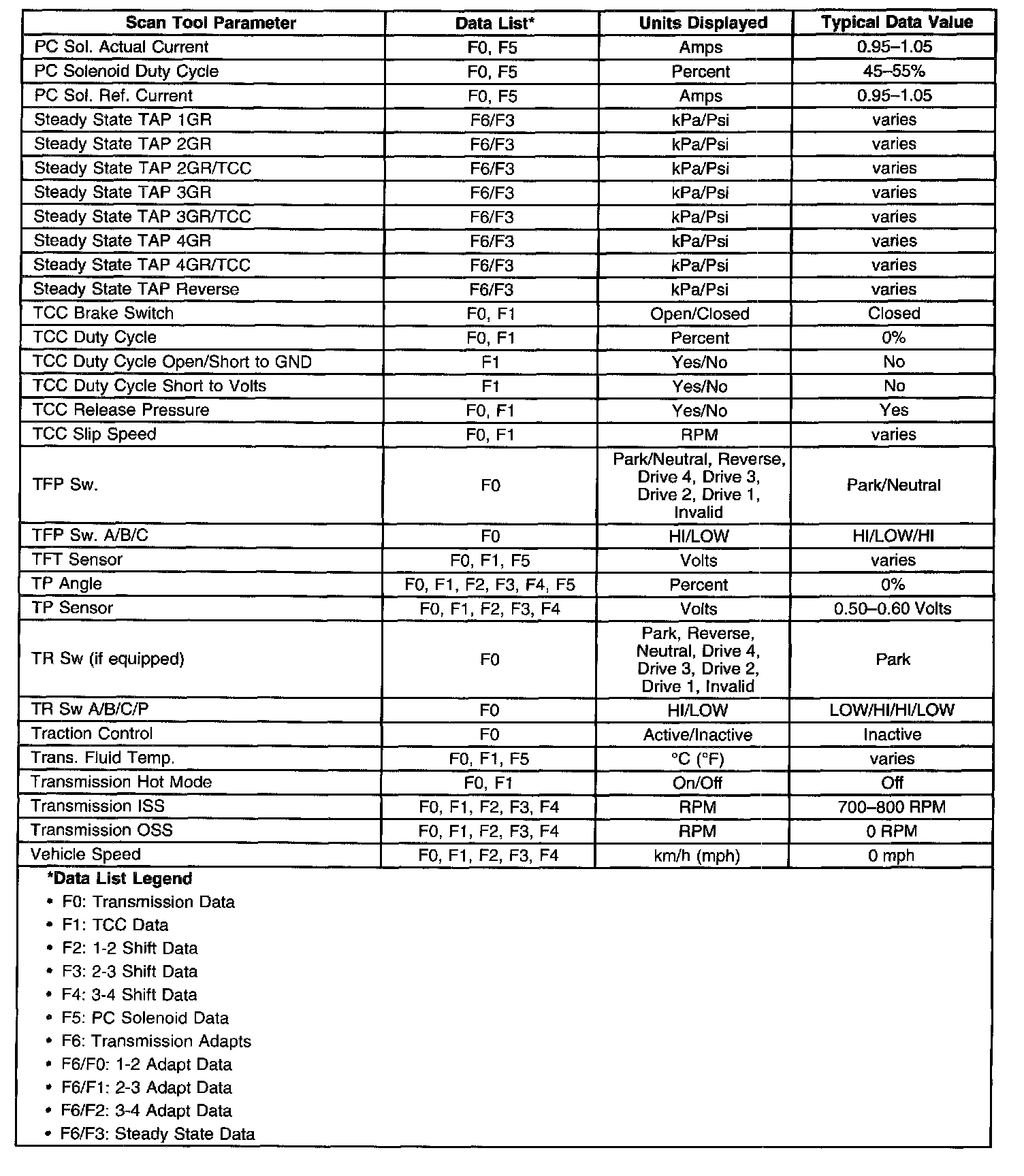 Transmission Scan Tool Data ListUse the scan tool data list under the following conditions: