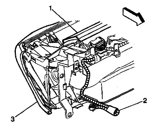 5. Remove the I/P module yellow connector (2) from the I/P bracket (3).