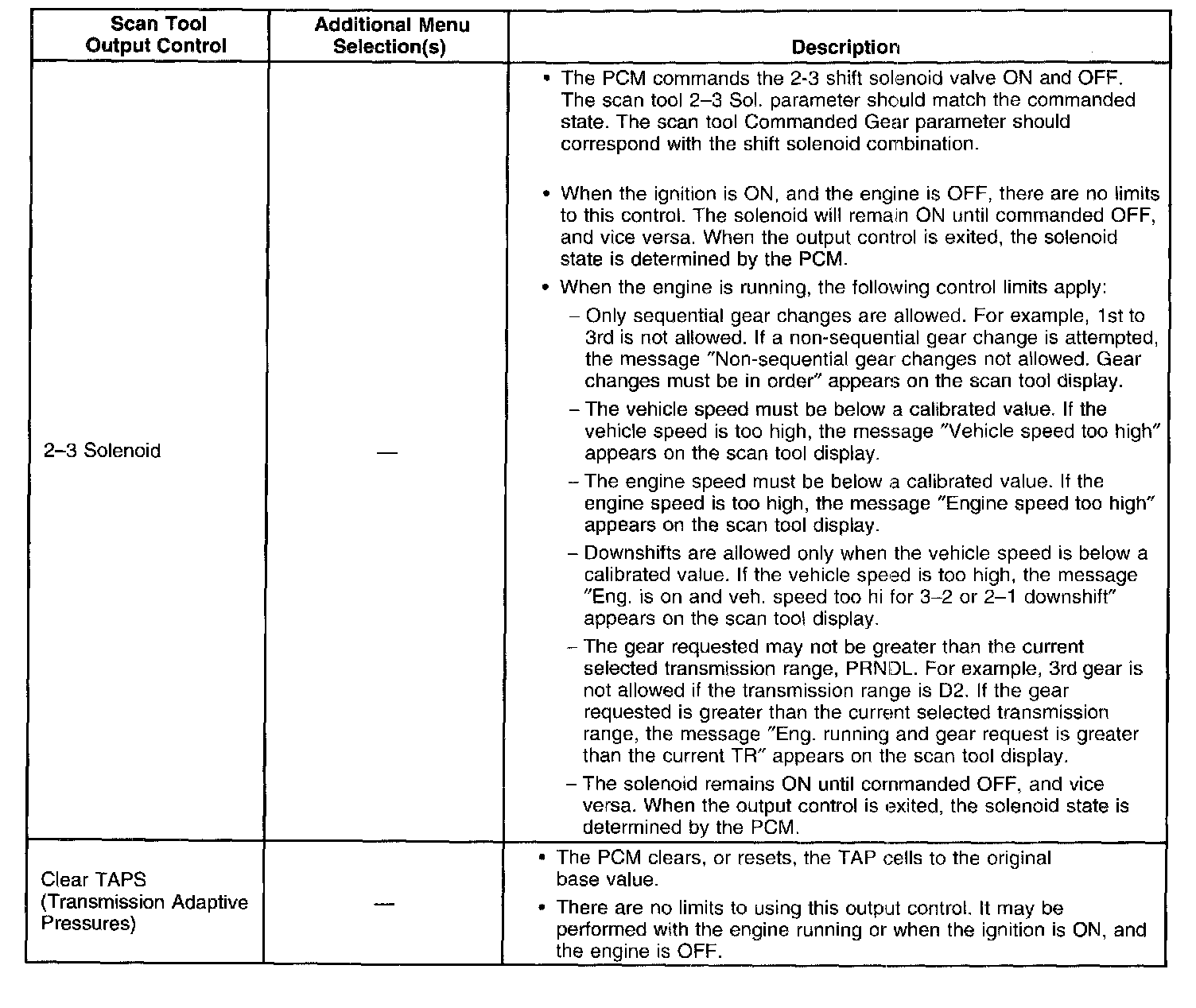 Scan Tool Output Controls