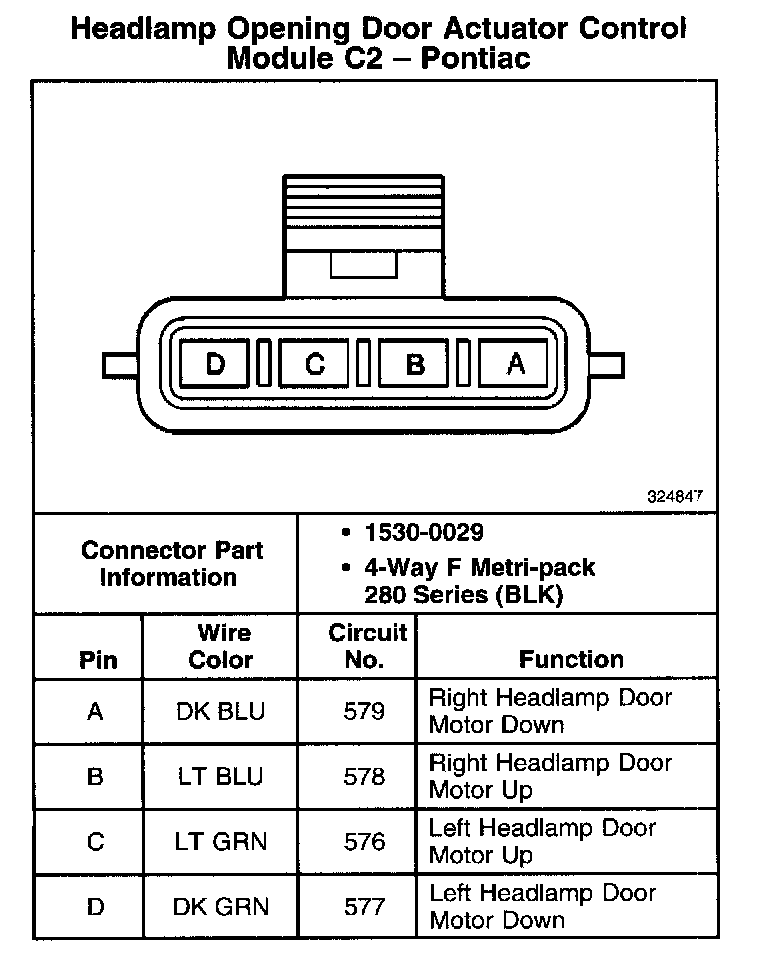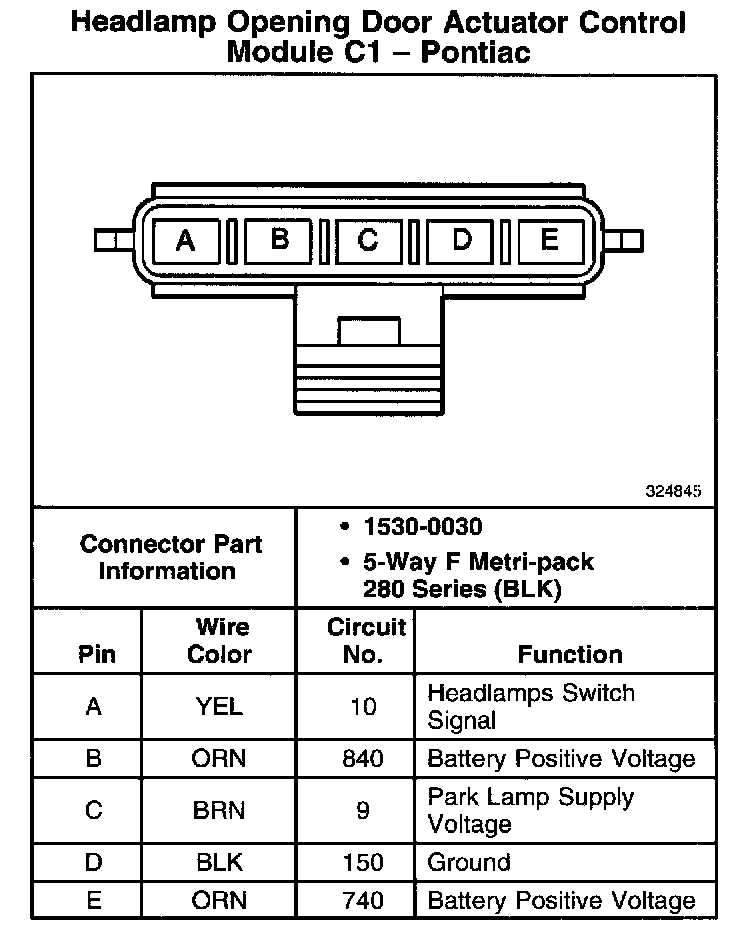 Headlamp Opening Door Actuator Control Module C1 - Pontiac:
