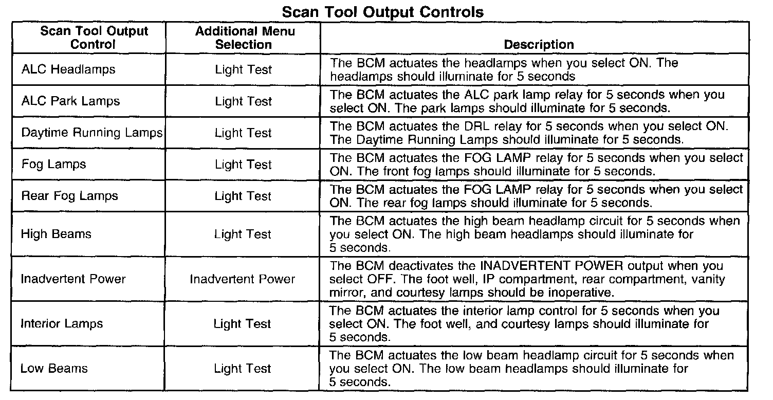 Scan Tool Output Controls: