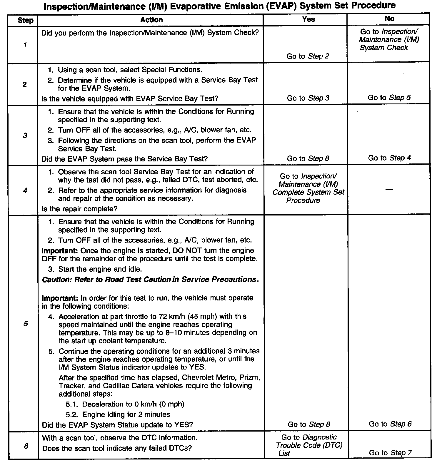 1. Perform the I/M System Check before performing this test. Failure to do so may result in difficulty updating the status to YES. Inspection/Maintenance (I/M) System Check