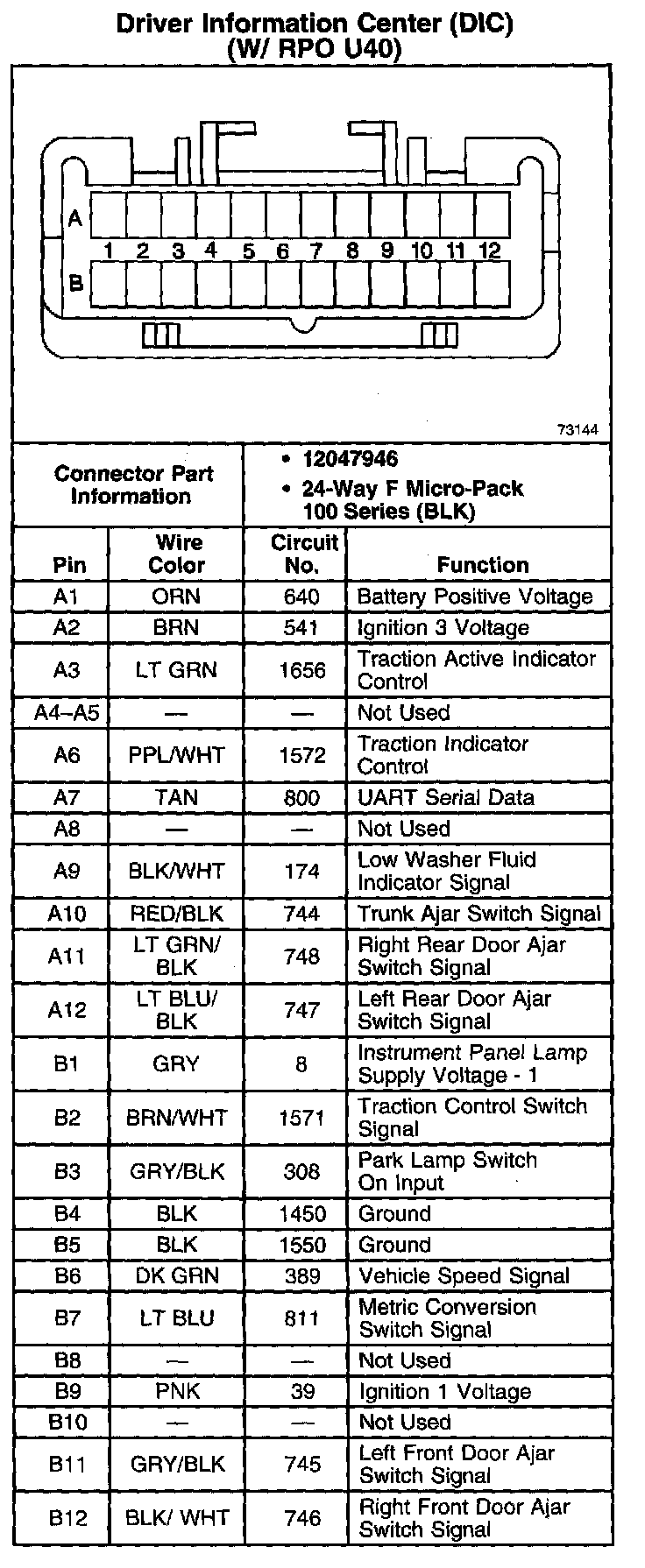 Driver Information Center (DIC) (W/RPO U40):