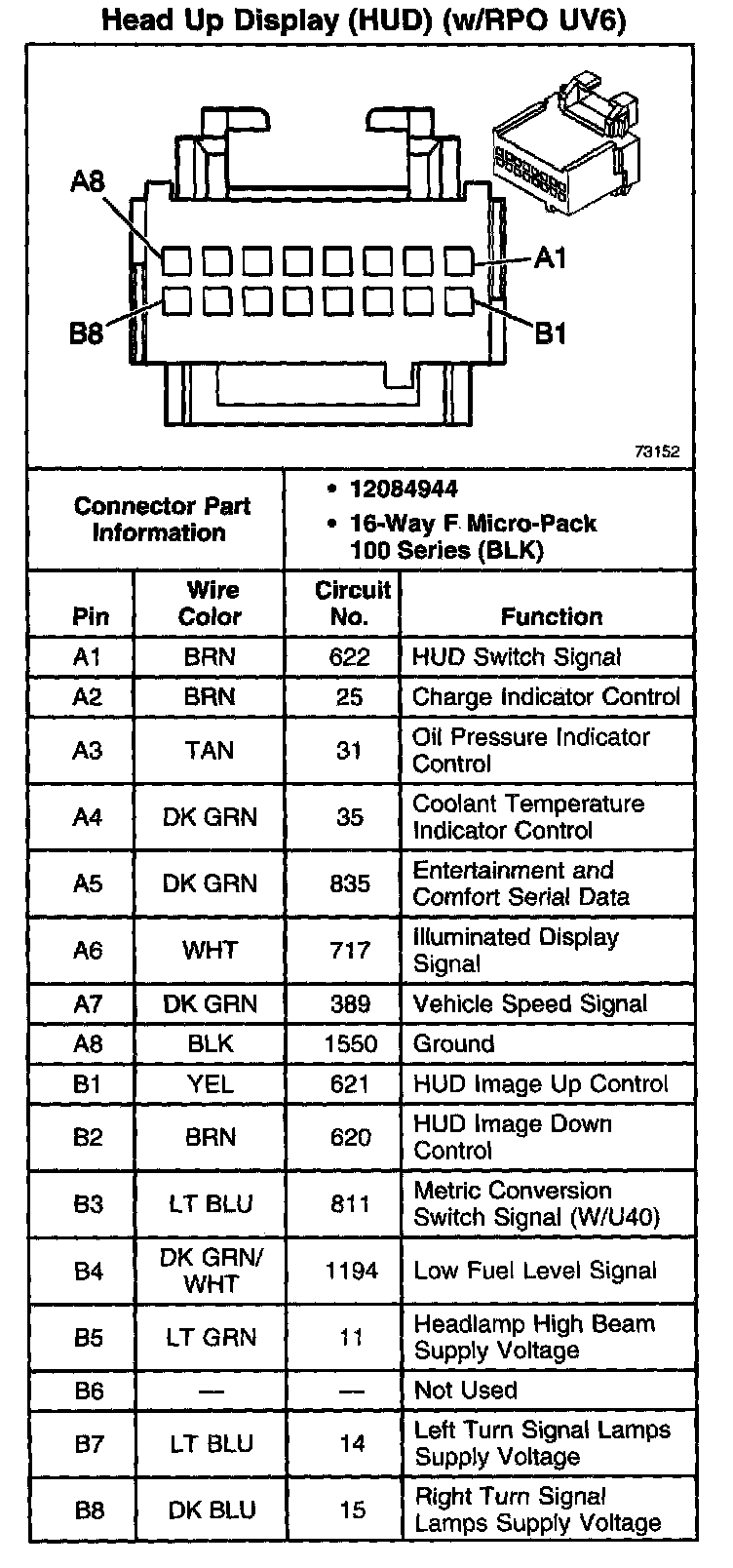 Head Up Display (HUD) Switch (W/RPO UV6):