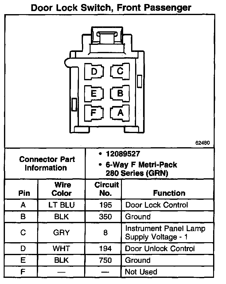 Door Lock Switch, Front Passenger: