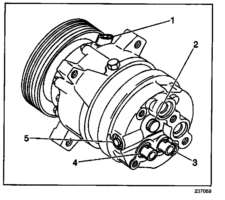 5. Perform a leak test. Refer to Compressor Leak Testing (V5 - Conventional Mount) or Compressor Leak Testing (V5 Direct Mount).