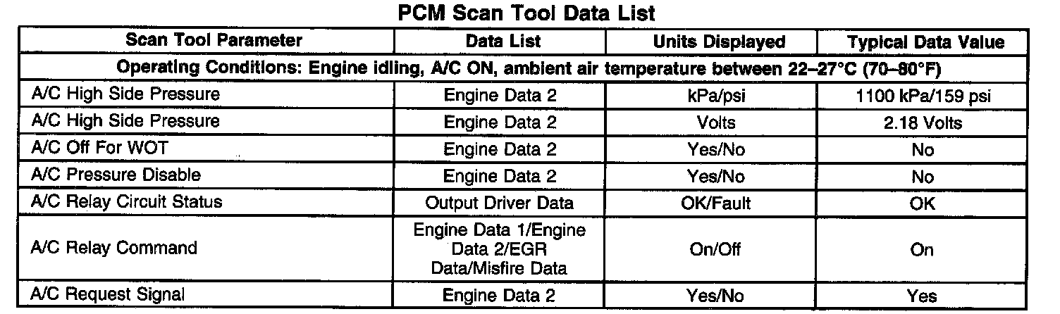 PCM Scan Tool Data List: