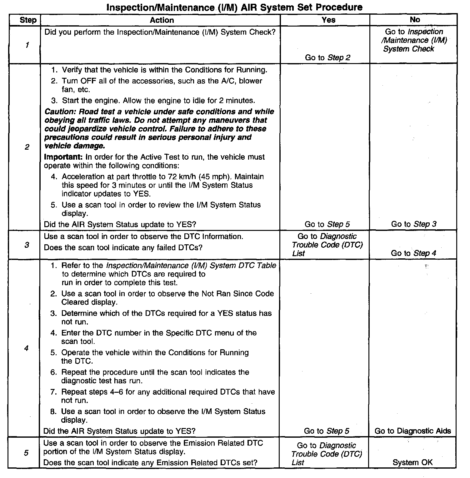 1. Perform the I/M System Check before performing this test. Failure to do so may result in difficulty updating the status to YES. Inspection/Maintenance (I/M) System Check