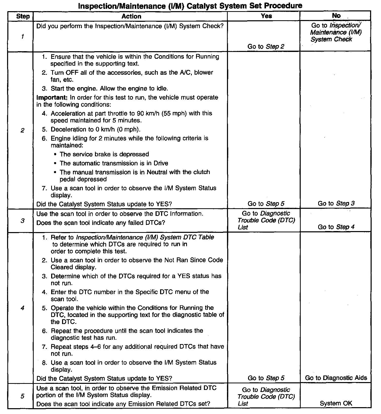 1. Perform the I/M System Check before performing this test. Failure to do so may result in difficulty updating the status to YES. Inspection/Maintenance (I/M) System Check