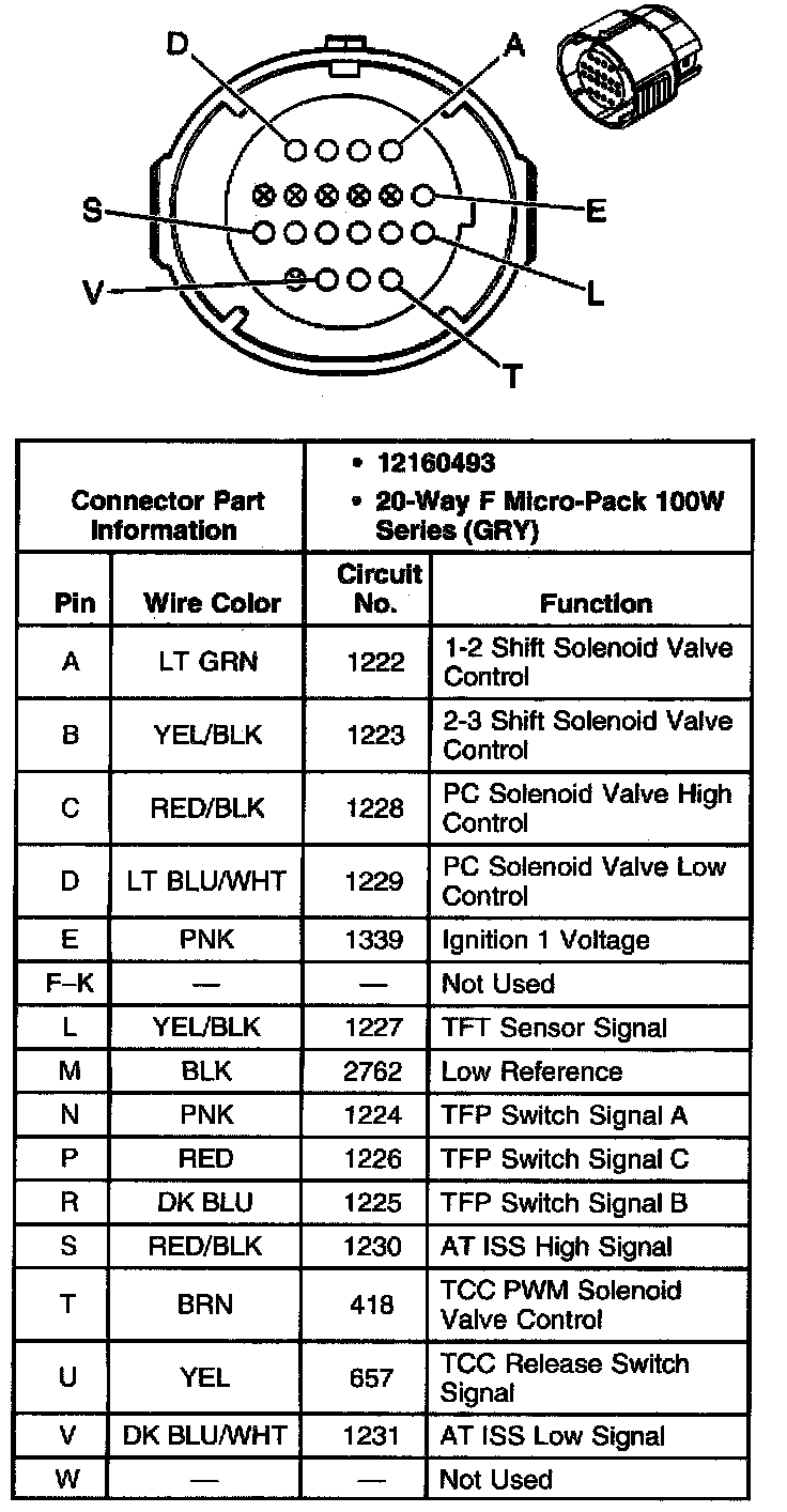 A/T Inline Harness 20-Way Connector, Transmission Side: