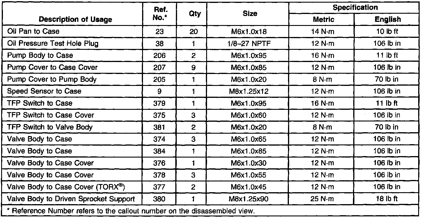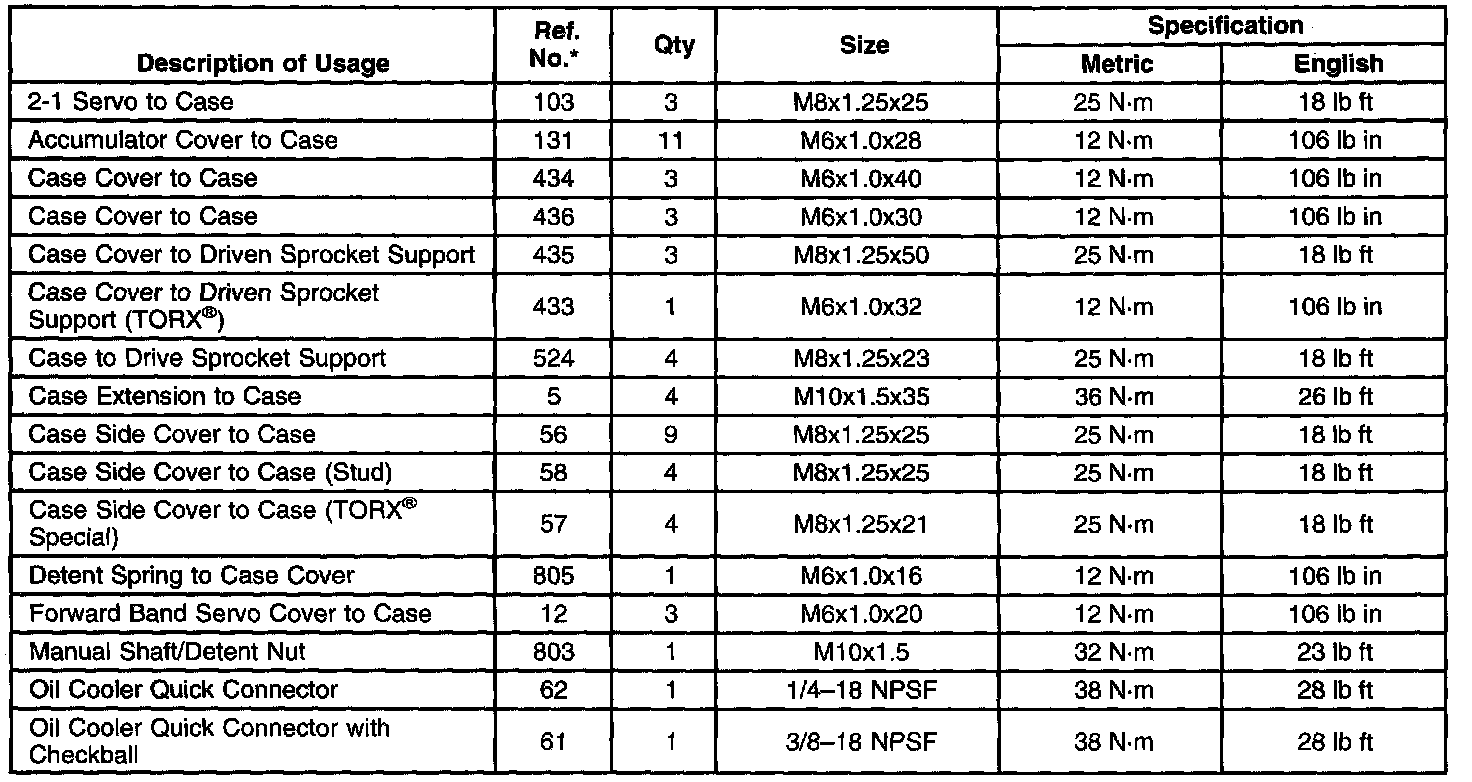 Fastener Tightening Specifications