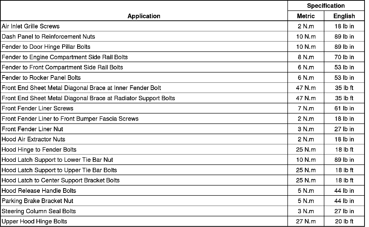 Fastener Tightening Specifications