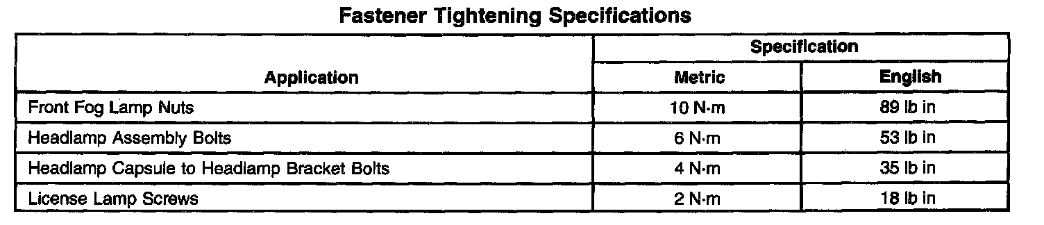 Fastener Tightening Specifications: