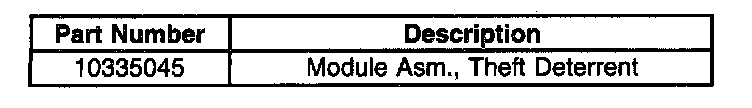 Replace the theft deterrent module with P/N 10335045 and reroute the module wiring harness to a new location using the procedure listed below.