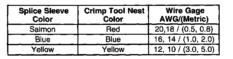 5. Select the proper splice sleeve (2) and the required crimp nest tool, refer to the Crimp and Seal Splice Table.