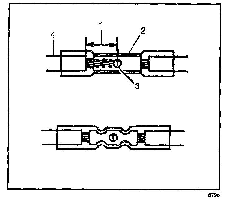 9. Insert the wires into the splice sleeve until the wire hits the barrel stop. The splice sleeve has a stop in the middle of the barrel in order to prevent the wire from passing through the splice (3).
