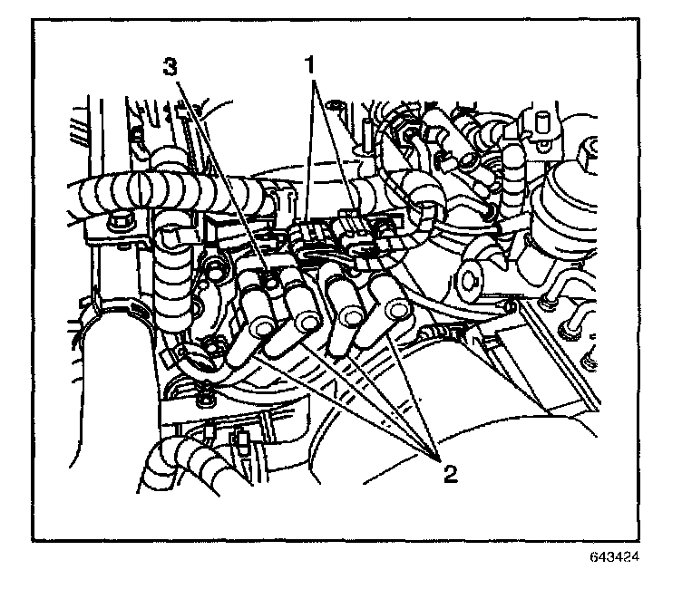 Tighten the ignition coils bolts (3) to 4 N.m (35 lb in).
