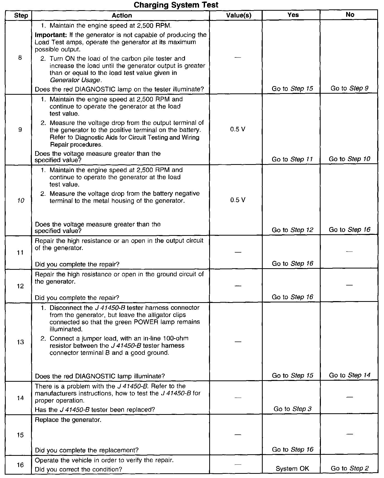 10. If the test has shown the generator to be OK, however the condition remains, test the PCM or its control circuit(s) to the generator.
