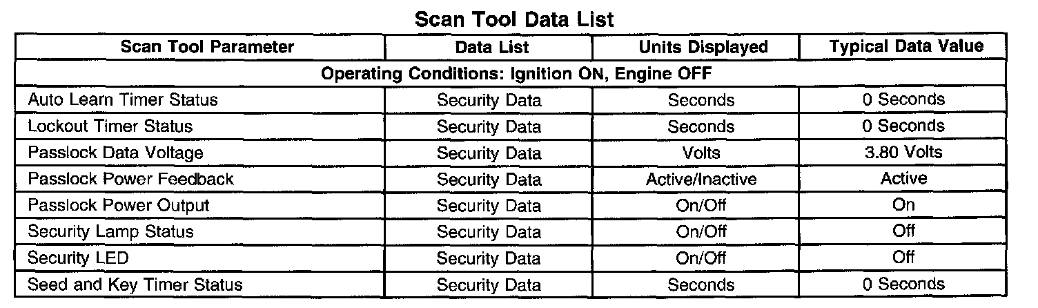 Scan Tool Data List - Antitheft System