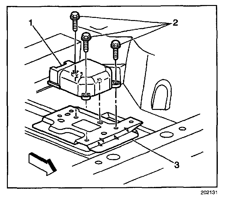 ^ Point the arrow on the SDM toward the front of the vehicle