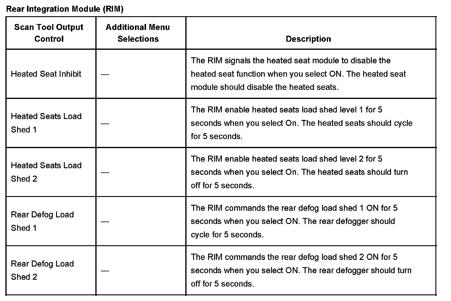 Rear Integration Module (RIM) Scan Tool Output Controls: