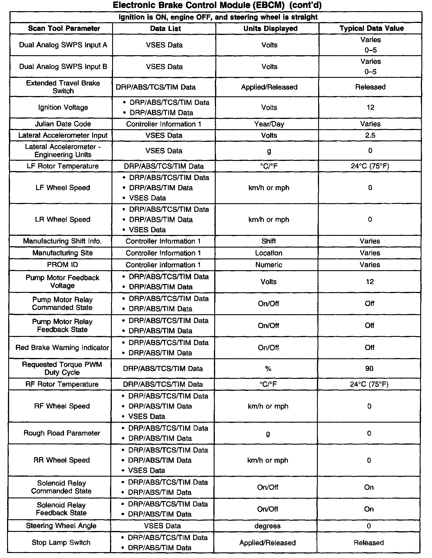 Electronic Brake Control Module (EBCM) Scan Tool Data List (cont'd):