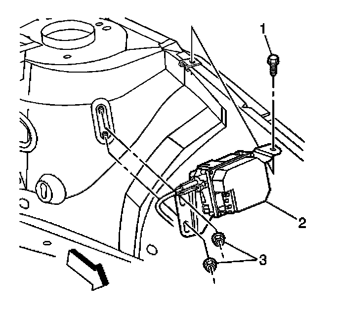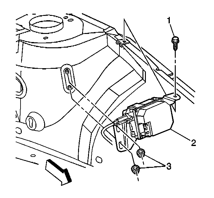 3. Remove the cruise control module bracket retaining fasteners (1, 3).