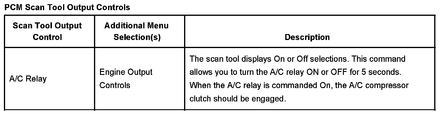Scan Tool Output Controls - Powertrain Control Module (PCM)