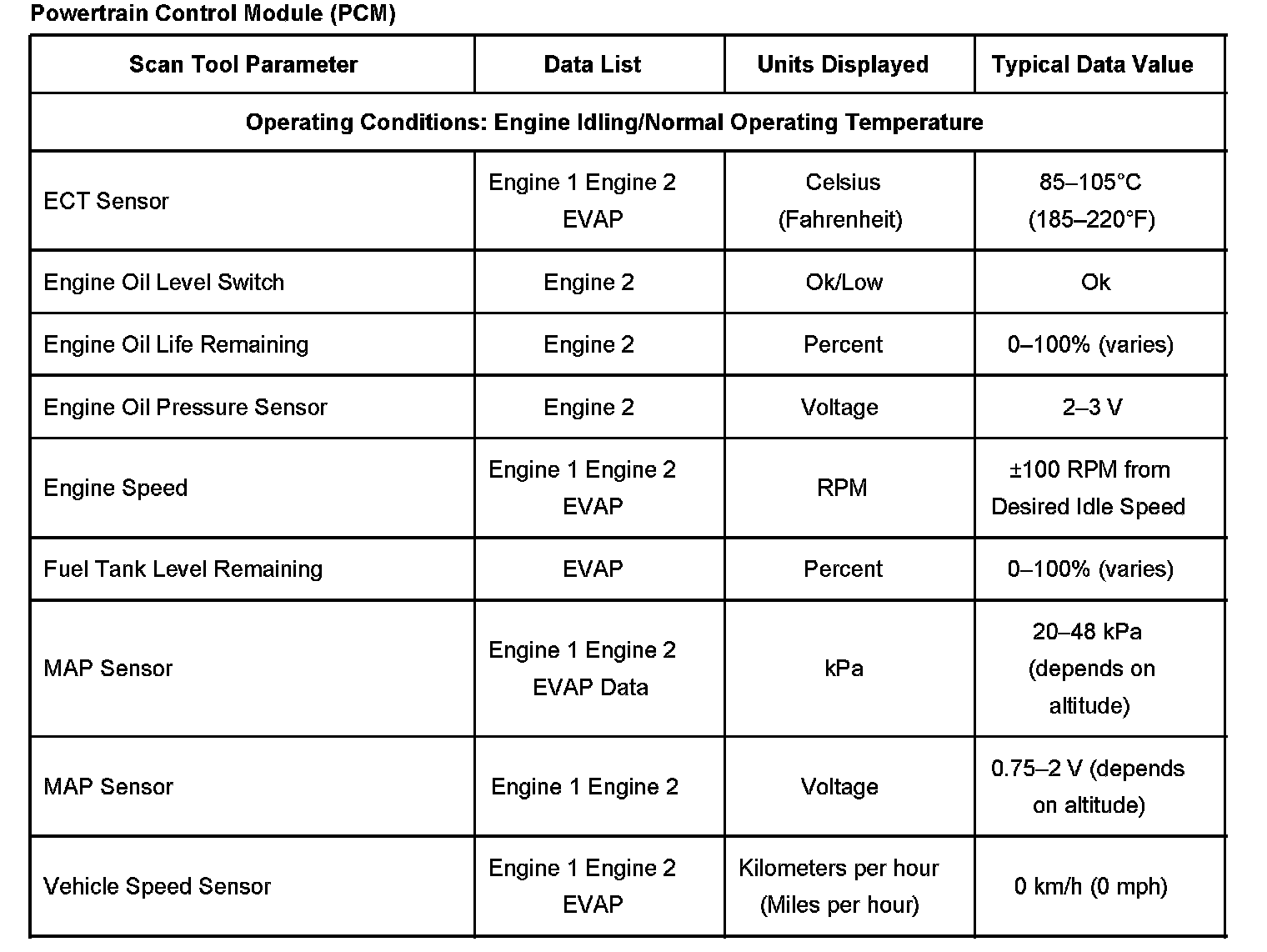 Scan Tool Data List - Powertrain Control Module (PCM)
