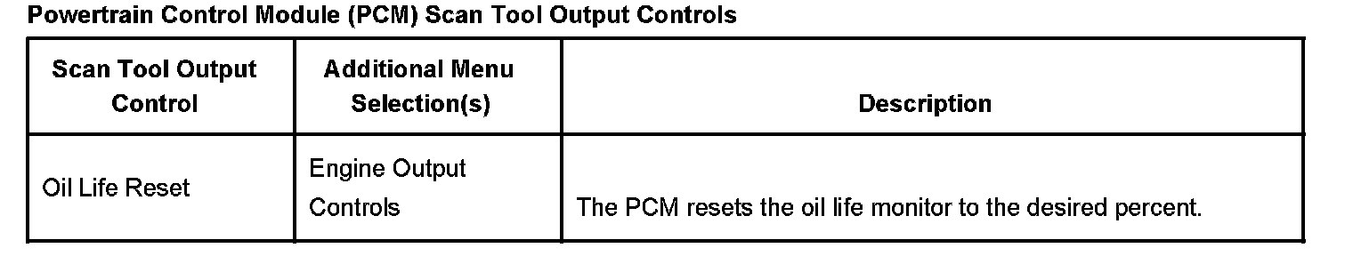 Powertrain Control Module (PCM) Scan Tool Output Controls:
