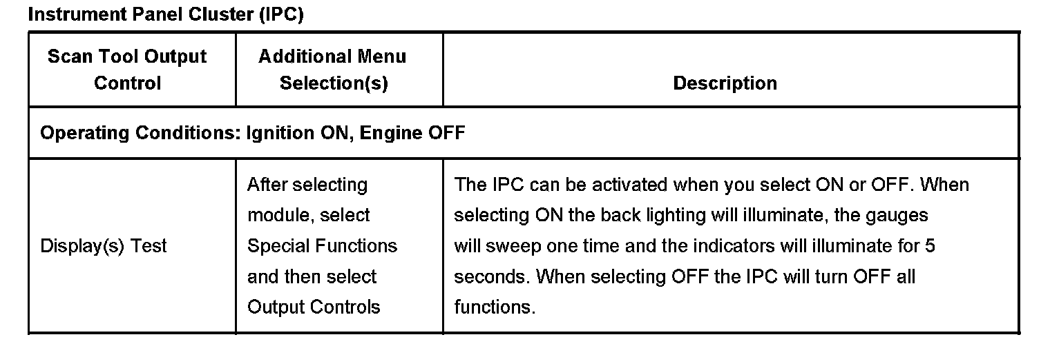 Instrument Panel Cluster (IPC) Scan Tool Output Controls:
