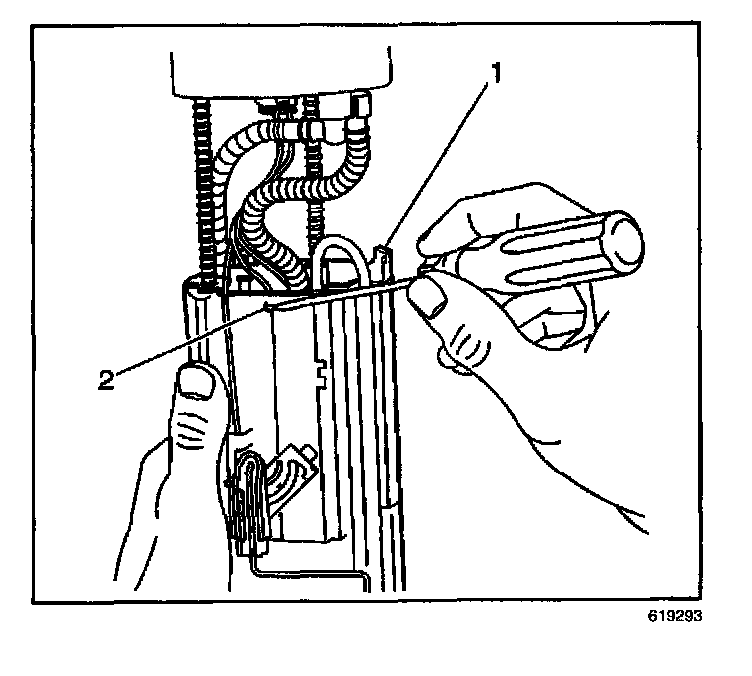 2. Remove the fuel pump and fuel level sensor electrical retaining clip at the top of the fuel sender assembly.