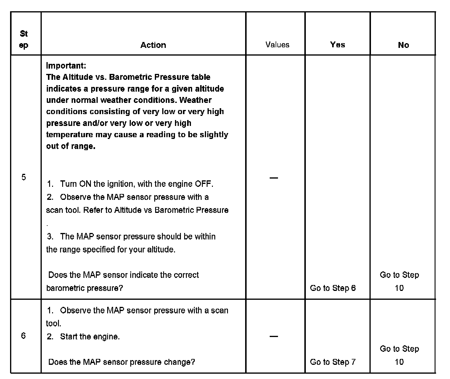 4. This step tests the MAP sensor's ability to correctly indicate BARO.