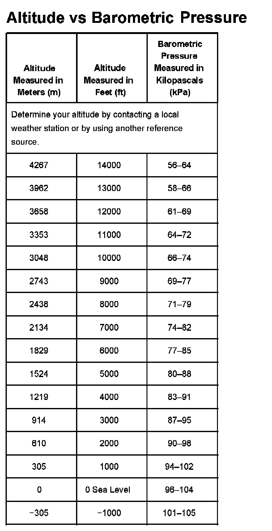 Altitude Vs Barometric Pressure:
