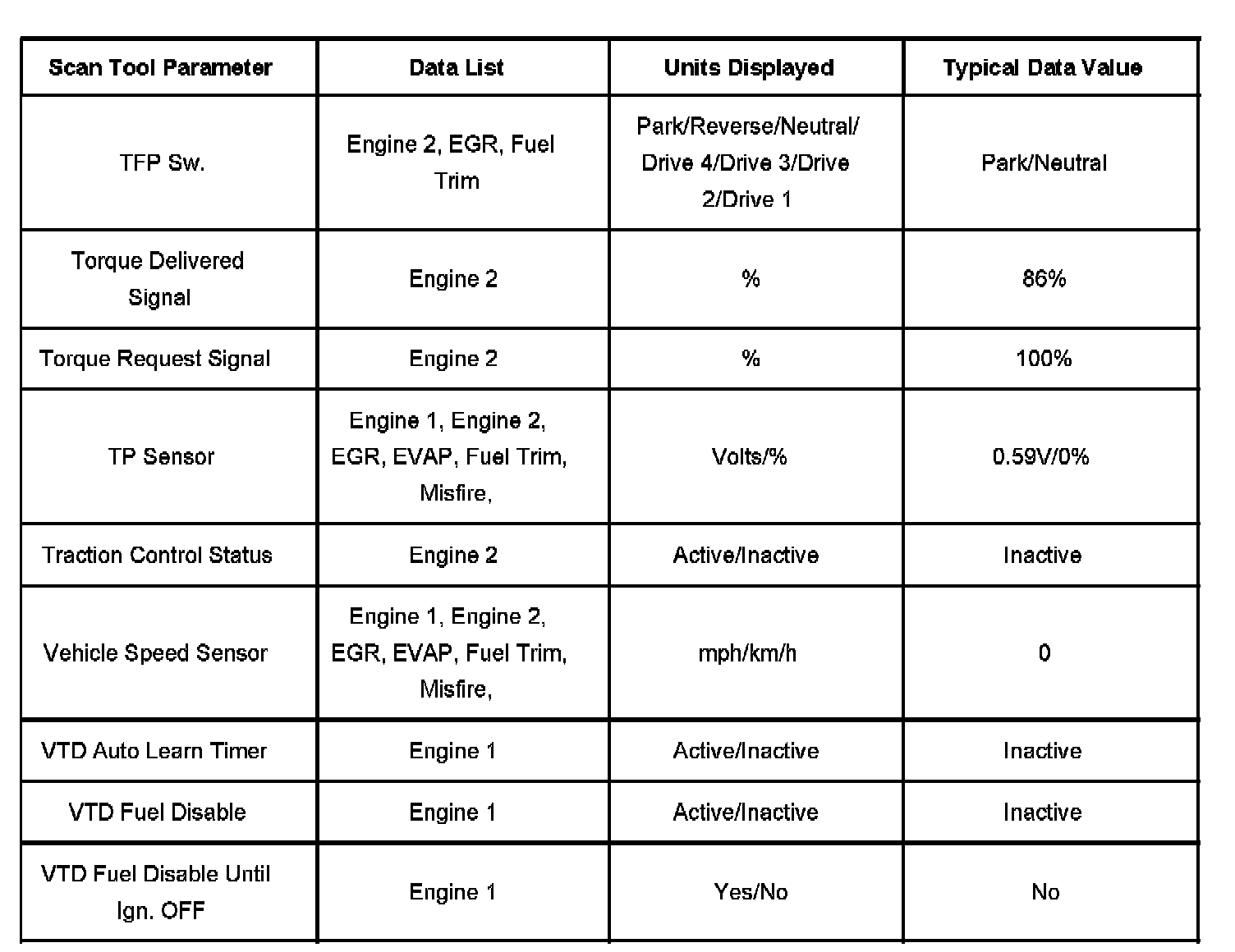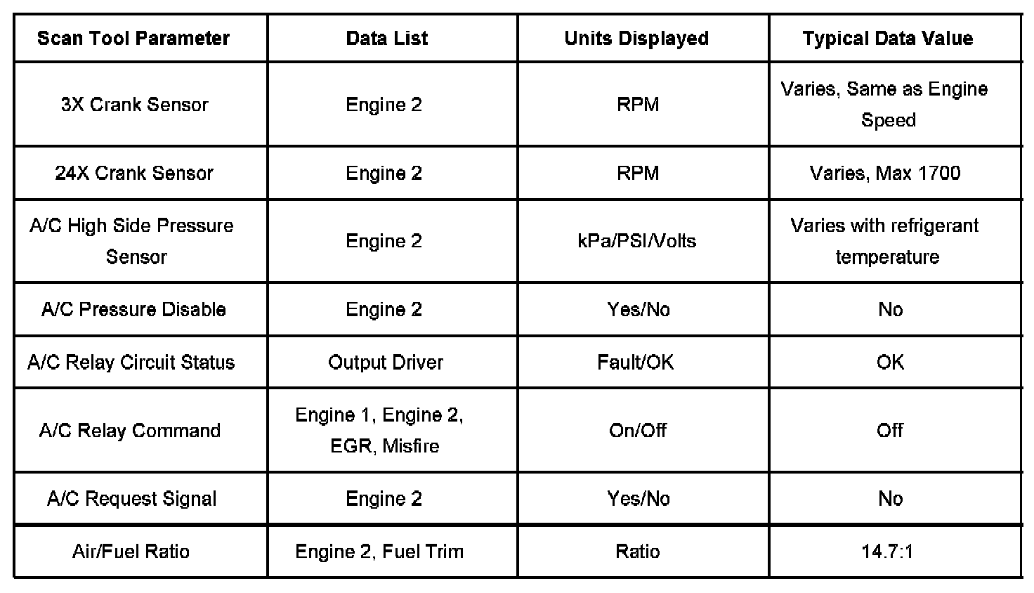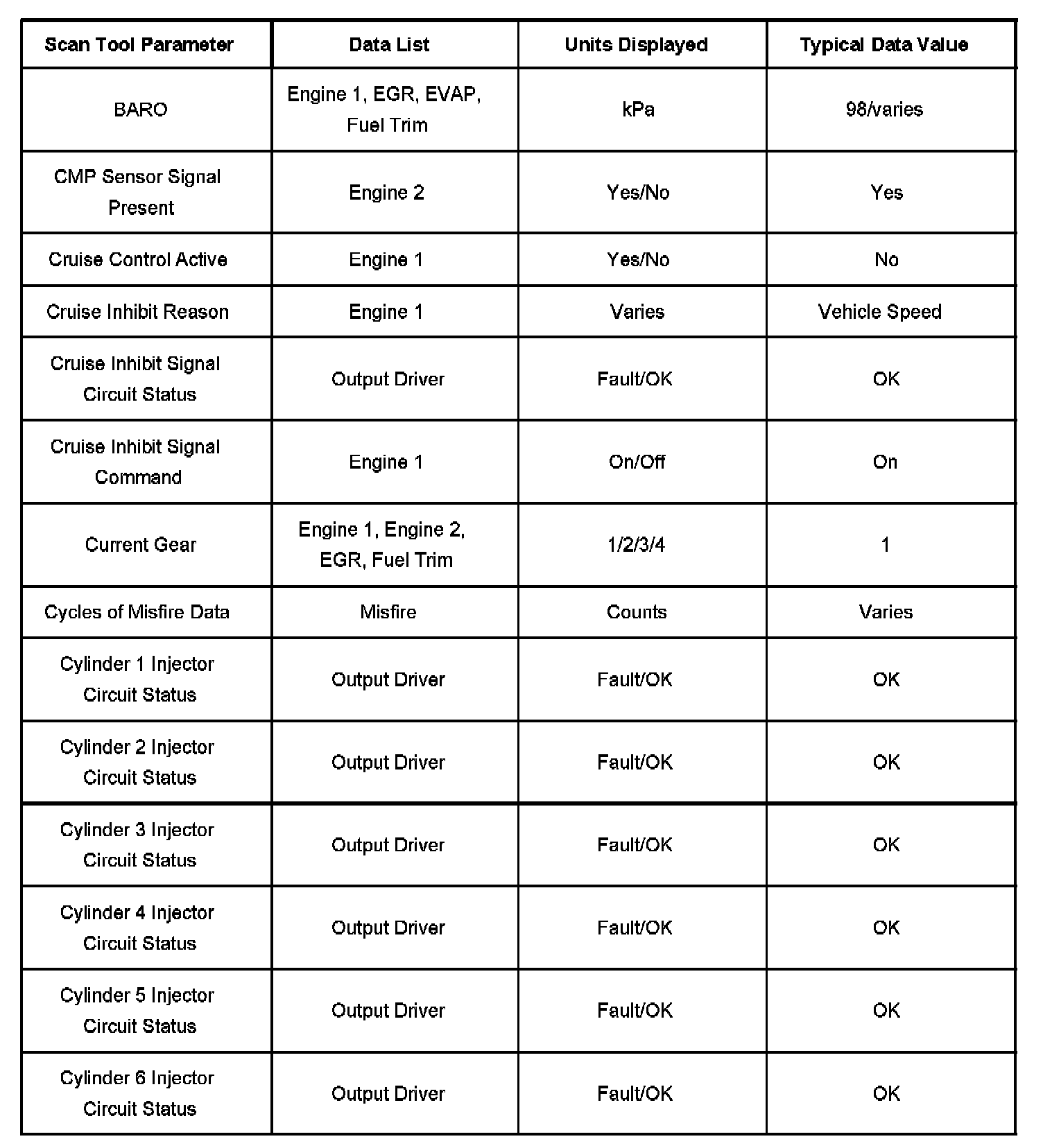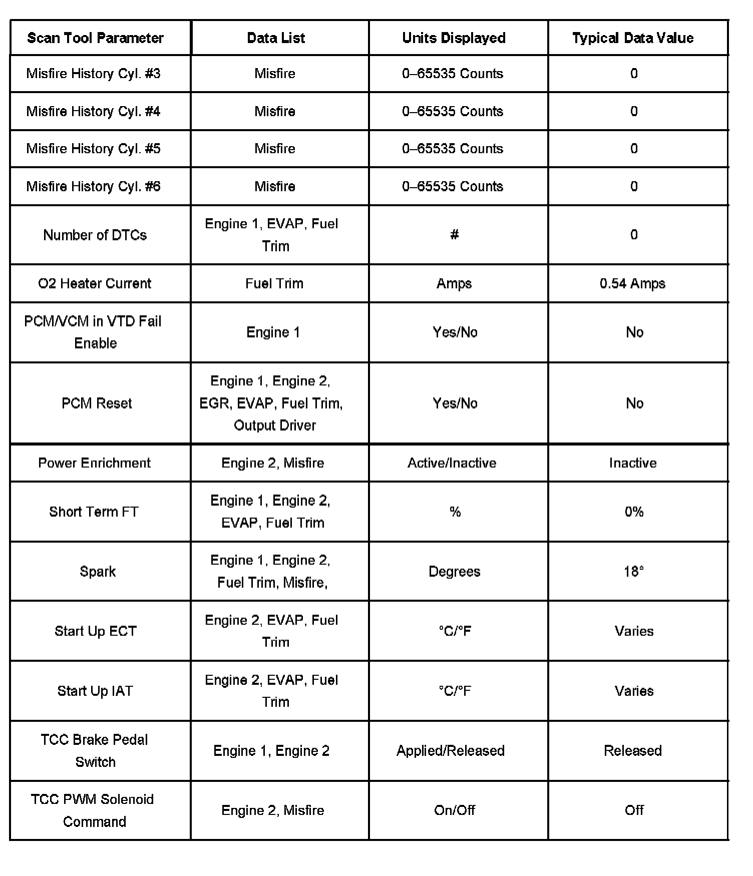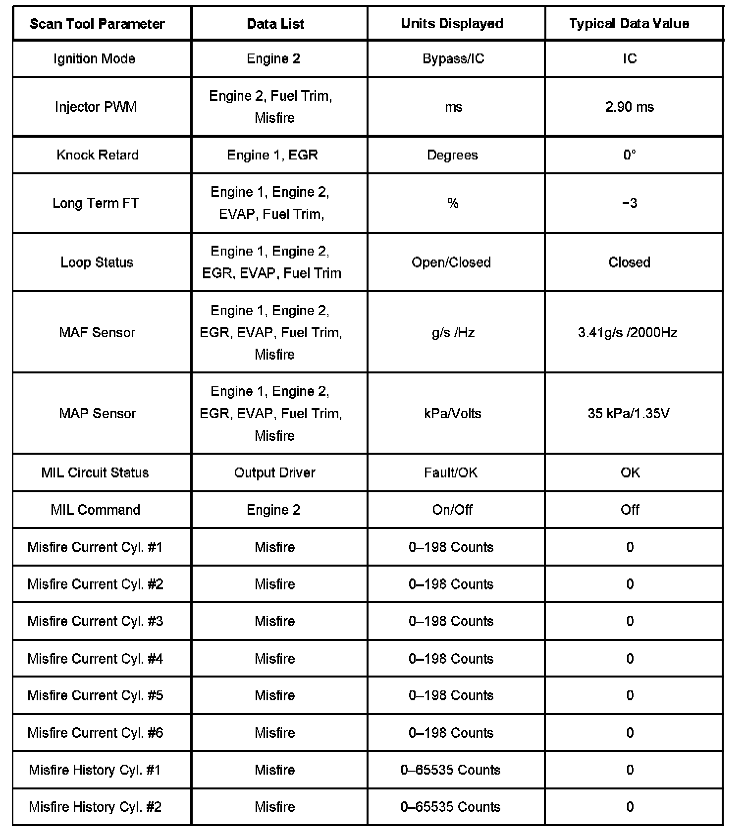 For scan tool parameter definitions, refer to Scan Tool Data Definitions. Scan Tool Data, Normal Values and Definitions